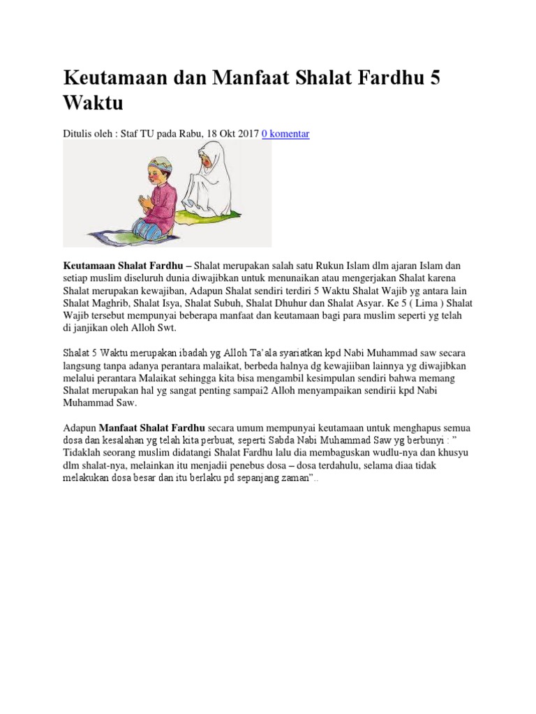 Artinya buku saku terjemah ini bukanlah rujukan yang kering dalil. Shalat semalam suntuk adalah shalat yang dikerjakan mulai dari tenggelamnya matahari sampai terbit fajar. Sholat subuh menjaga diri seorang muslim 3. Bukan hanya sekali saja mengerjakannya, namun setiap hari ada 5 waktu sholat. Selain manfaat kesehatan secara umum di atas, juga manfaat karena terletak pada waktu dan gerakannya.